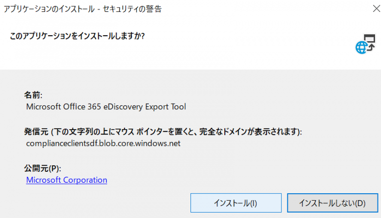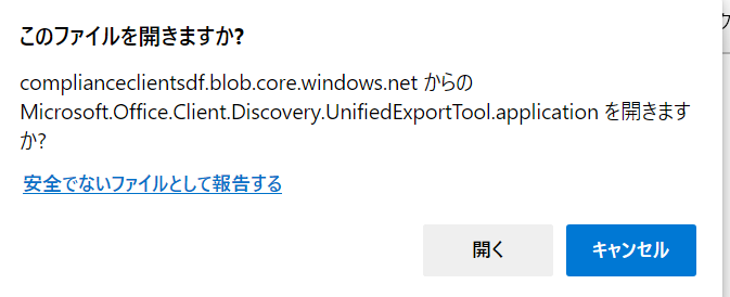 コンテンツの検索で、一度結果をエクスポートしてダウンロードする際に、ClickOnceを利用して、インストールが始まります。
