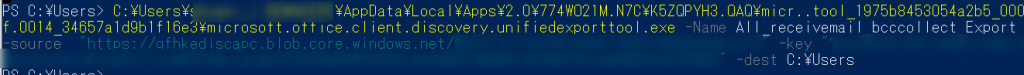 exeフィルに対して、-Name、-source にURL、-keyにSAS tokenを入力、-destで出力先を指定することでエクスポートが始まります。