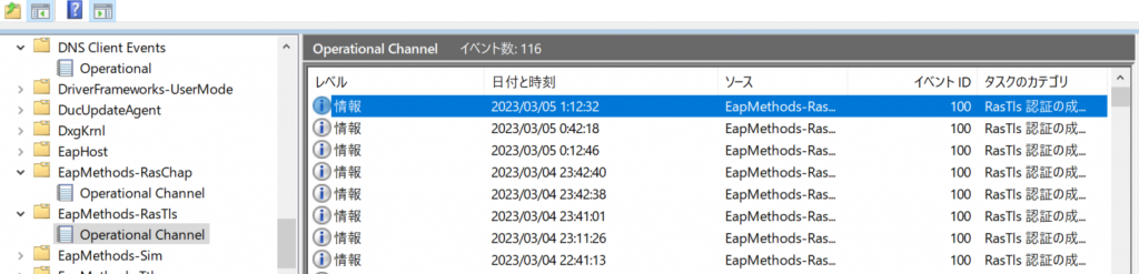 Windowsのイベントログで、認証のログを下のスクショにのっけていますが、毎時41分,11分あたりで認証が走っていることが分かります。