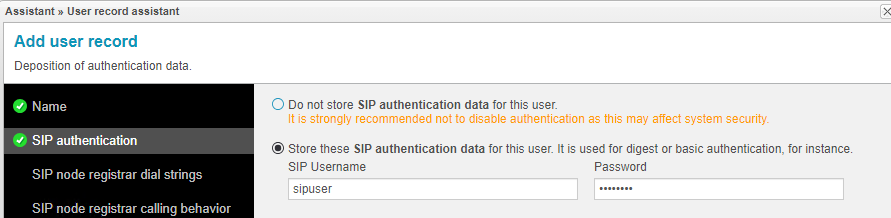 SIP Phoneで認証するためのユーザを作成します。