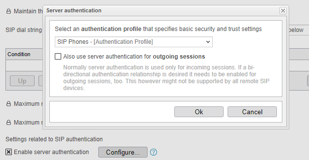 Settings related to SIP Authentication で、Authentication profile をNode作成時に自動作成されたAuthentication Profileを選択します。