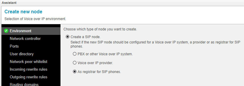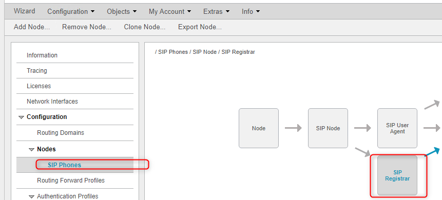 ・Configuration → Nodes → Add Node → As registar for SIP phones