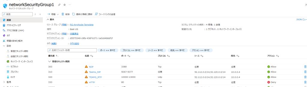 Azureの初期状態だと、SIP Registerを受け付けるためのポートが解放されていないので、Azure側のNSGを設定します。