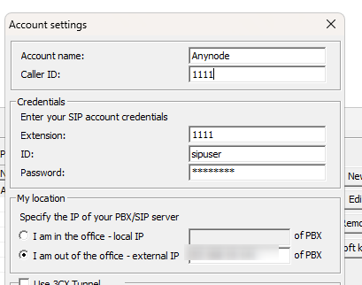 まずは、Anynodeとソフトフォンの接続を行います。